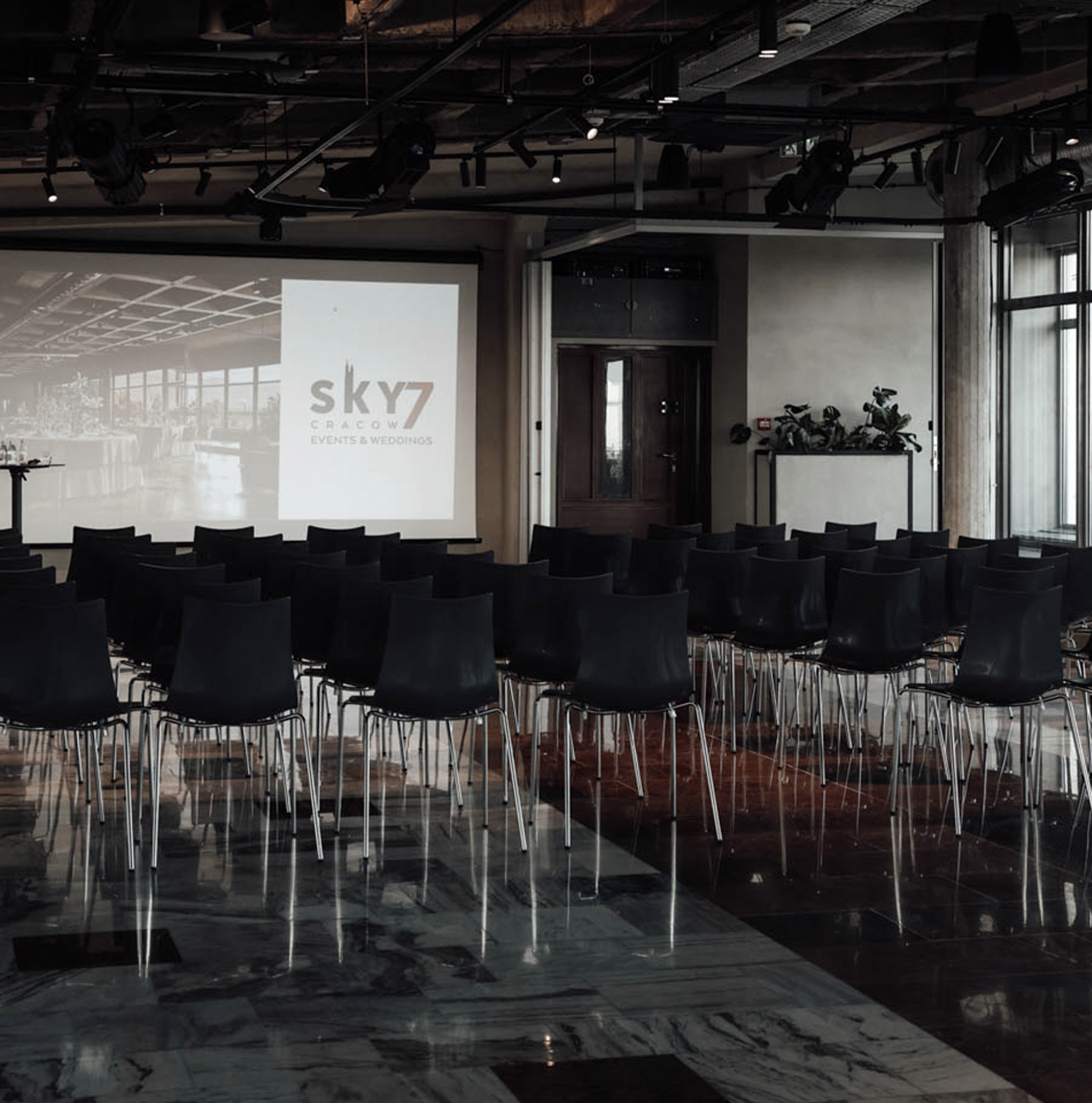 Wyobraź sobie wesele na tarasie, gdzie zachodzące słońce oświetla Wawel, tworząc magiczną atmosferę, którą Twoi Goście będą wspominać przez lata. Sky7 to także idealne miejsce na elegancką komunię, przyjęcie okolicznościowe, konferencję lub szkolenie. Nasza przestrzeń łączy nowoczesny komfort z profesjonalną obsługą, dzięki czemu każde wydarzenie przebiega perfekcyjnie, a Goście czują się wyjątkowo.