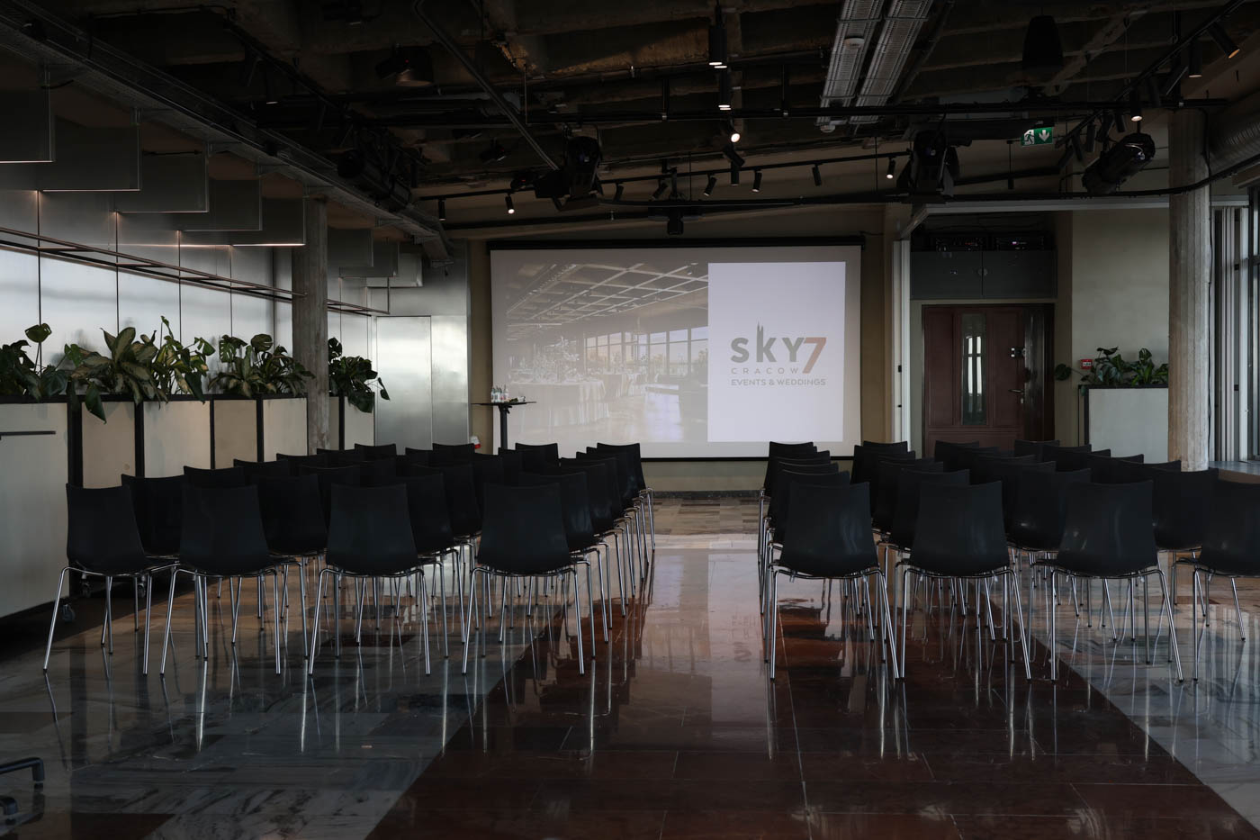 Przestrzeń Sky7 została zaprojektowana z myślą o pełnej personalizacji wydarzeń. Przeszklone ściany wprowadzają mnóstwo naturalnego światła, a mobilne układy stołów, eleganckie wyposażenie i industrialne wnętrza pozwalają dostosować każdą imprezę do indywidualnych potrzeb Gości. Każdy detal – od oświetlenia, przez nagłośnienie, po komfortowe miejsce dla Gości – został starannie przemyślany, by tworzyć niezapomnianą atmosferę i najwyższy standard organizacyjny.