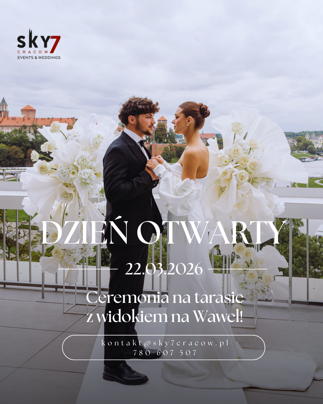 Sky7 Events & Weddings to wyjątkowe wydarzenia w Krakowie. Wybierz wydarzenie, które Cię zainspiruje, i pozwól, by wyjątkowa atmosfera Sky7 porwała Cię w niezapomniany nastrój. Spotkajmy się ponad miastem, z widokiem na Wawel, by świętować, cieszyć się chwilą i tworzyć wspomnienia, które zostaną z Tobą na długo.